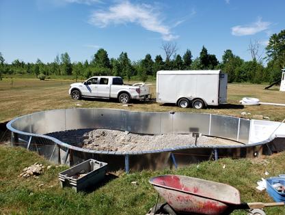 Triaxle and Live Bottom. The most common size above-ground pool is a 24ft round. GBI Pool Services Inc.